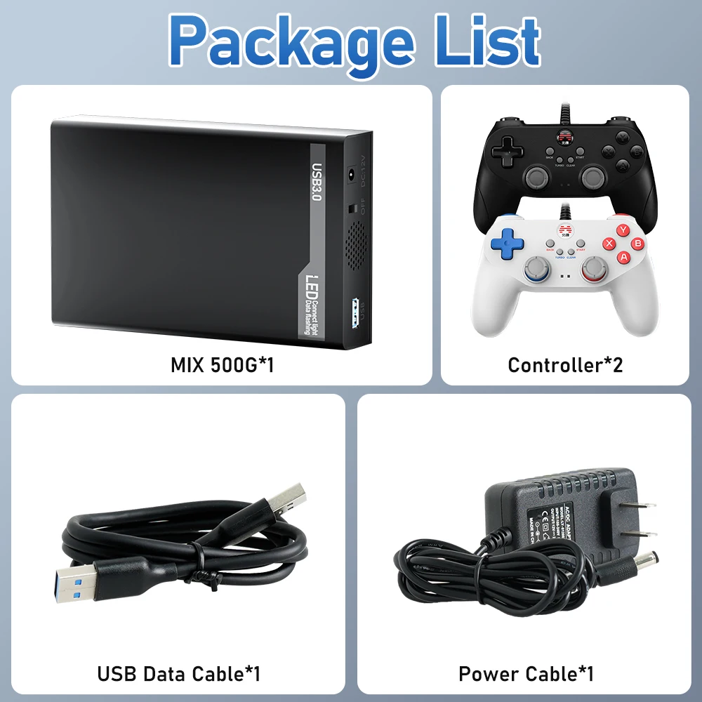MIX 500G HDD capacity is 500G. It has a variety of built-in games, including PC games, emulator games and retro games, which can meet the various gaming needs of players.
