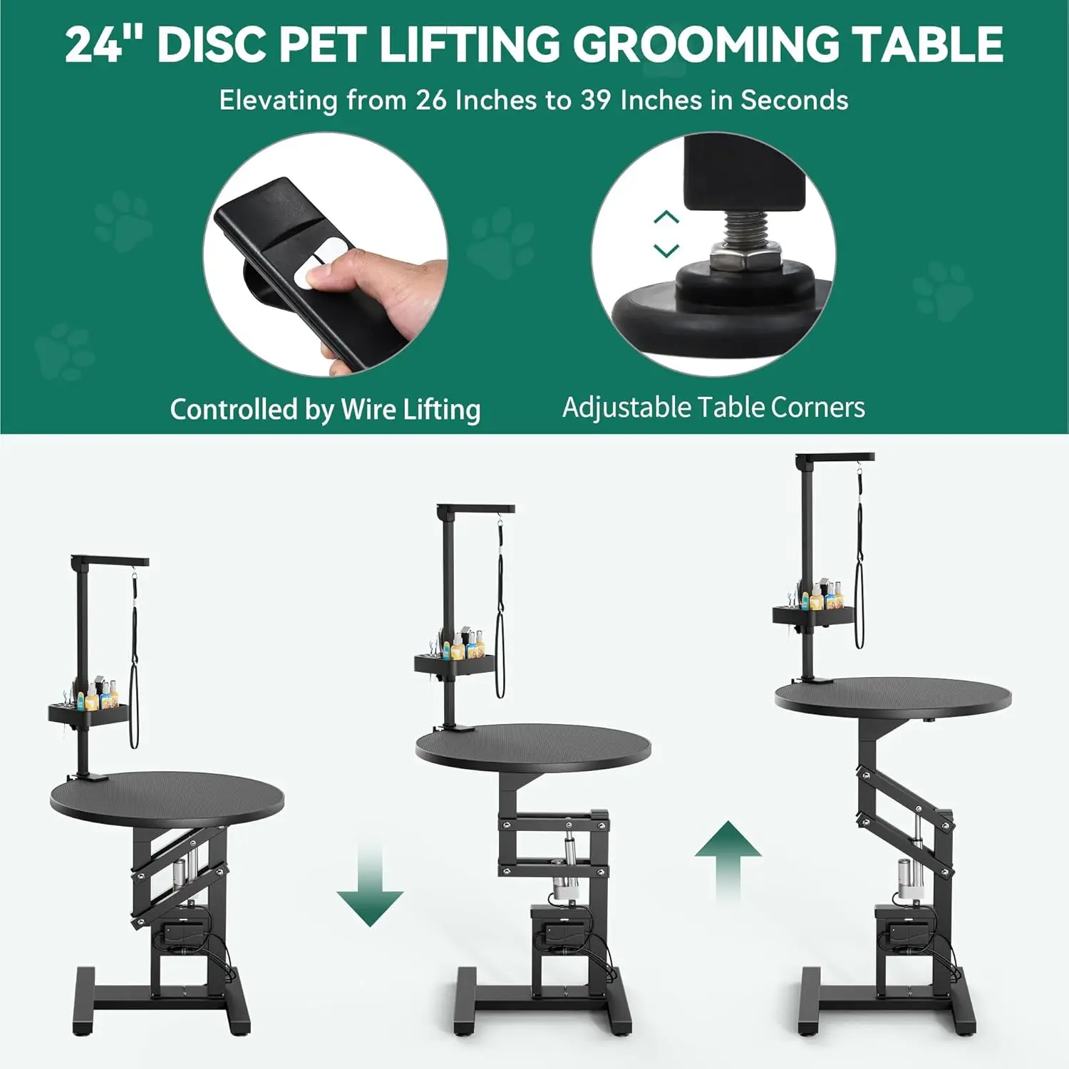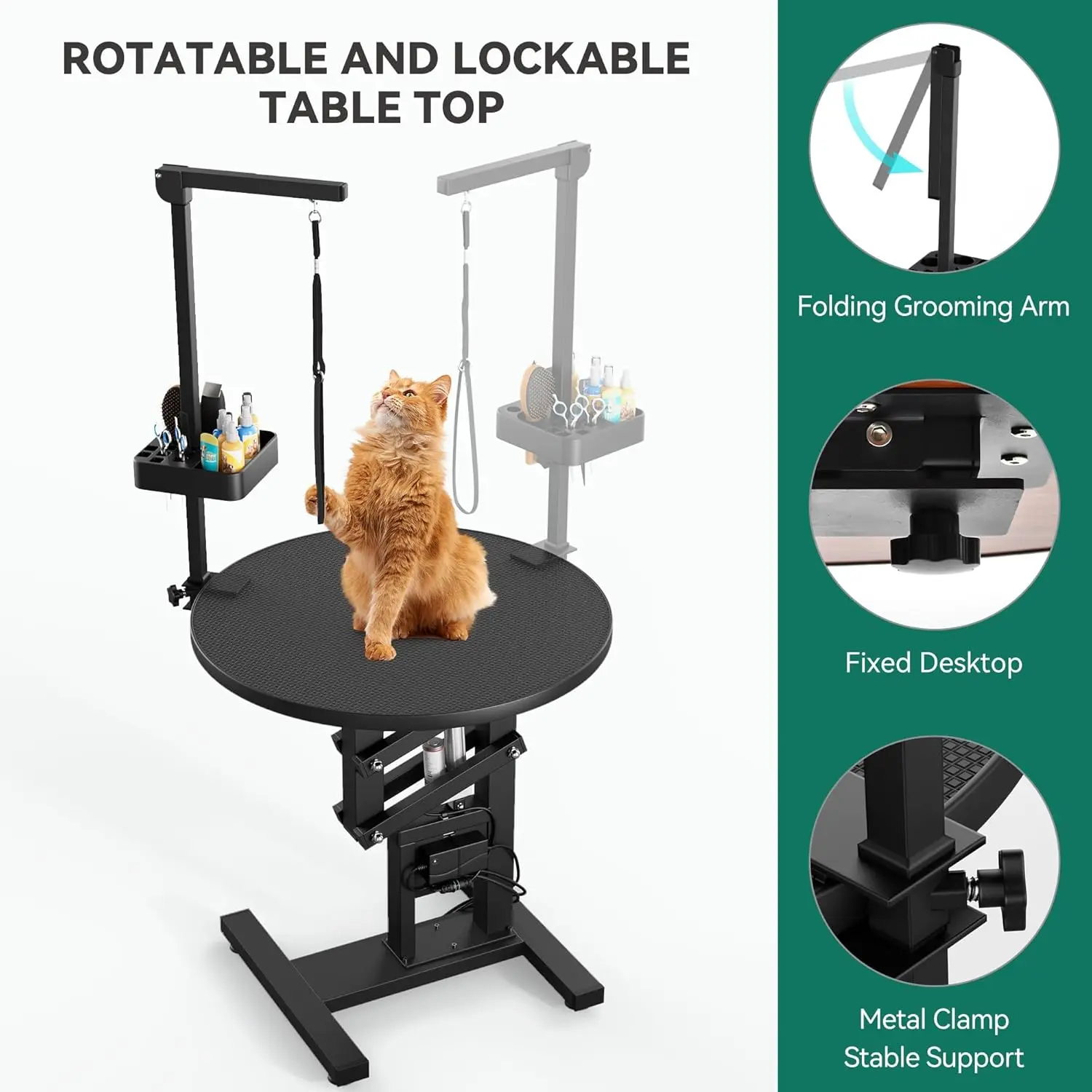 Electric Lift Dog Grooming Table 24" Rotating Desktop Pet Grooming Table for Dogs at Home, Adjustable Overhead Arm, Black